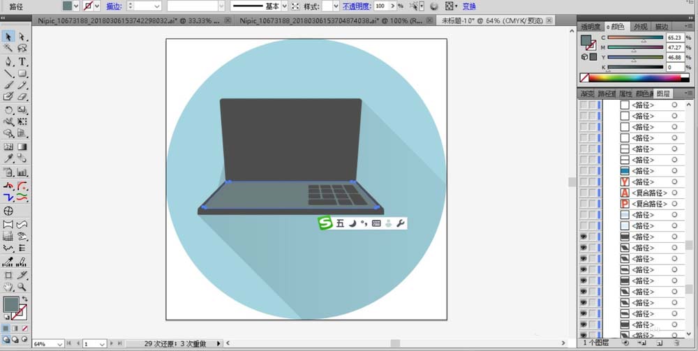 1、用圆形工具画出图标所在的背景路径,再用矩形工具画出键盘还有上面的所有的按钮。