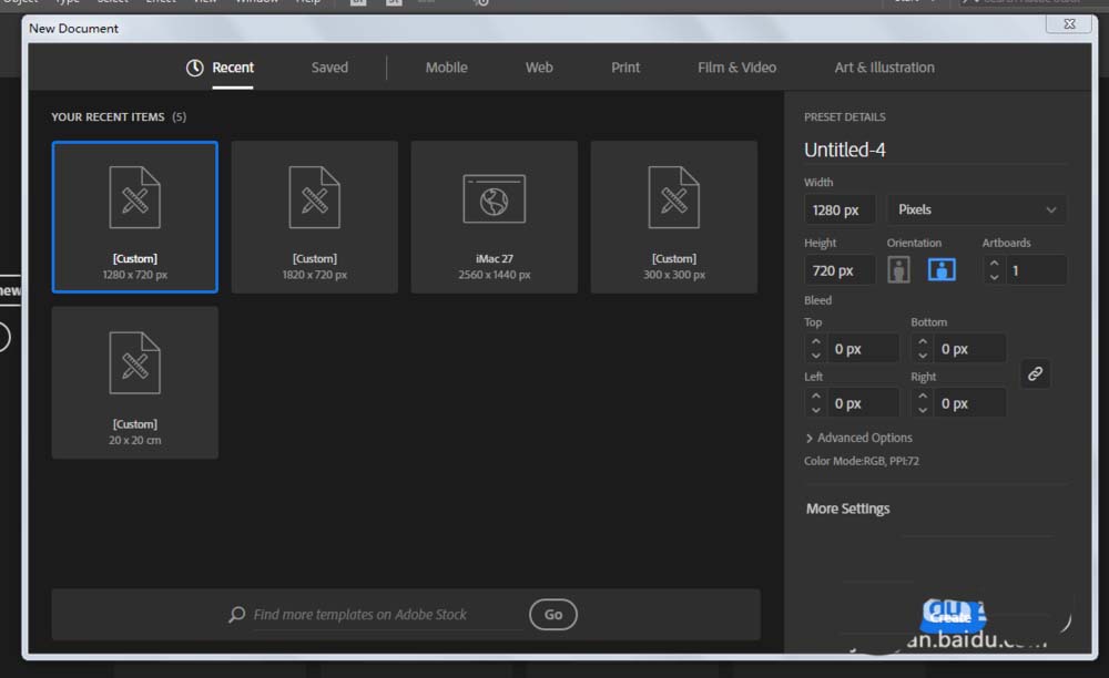 1、新建一个1280*720,颜色模式为RGB的文件。