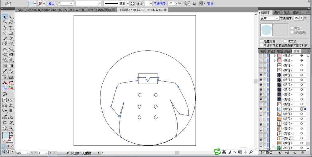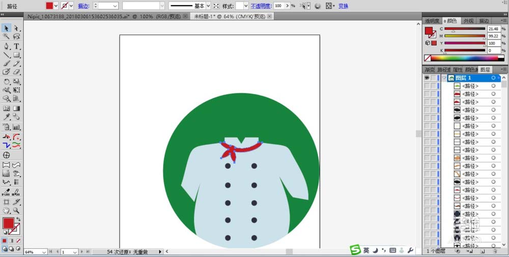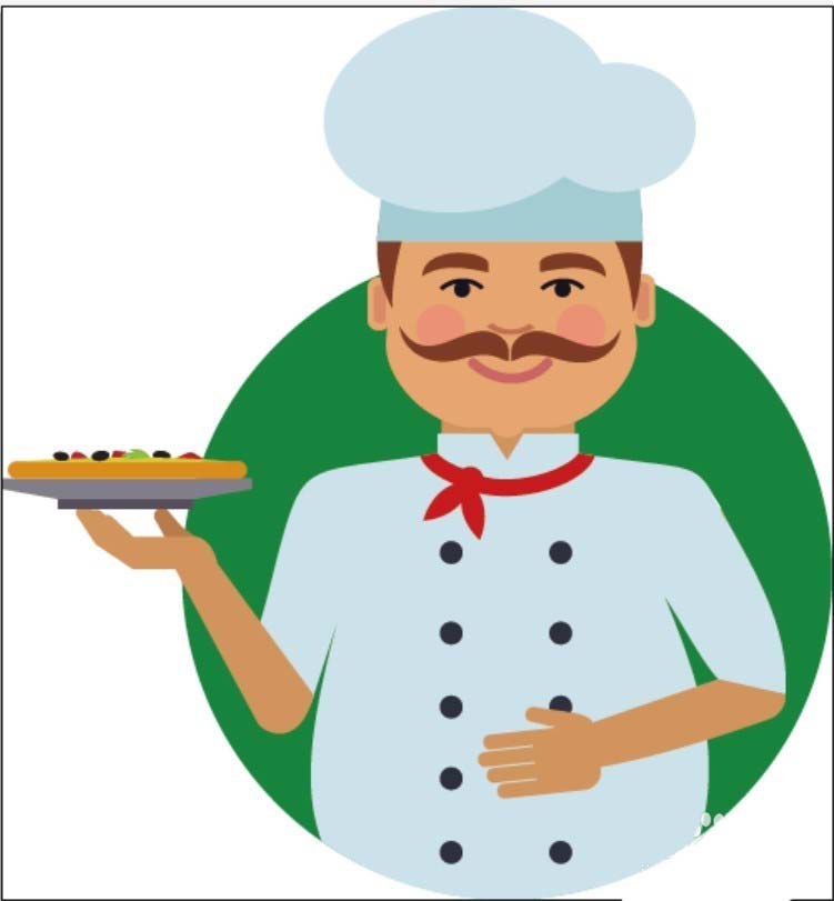 1、首先,我们画出厨师所在背景圆形,再用钢笔工具画出他的服装路径,还有正前方的圆形的纽扣。