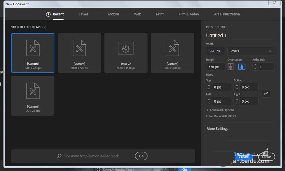 1、新建一个1280*720颜色模式RGB的文档。