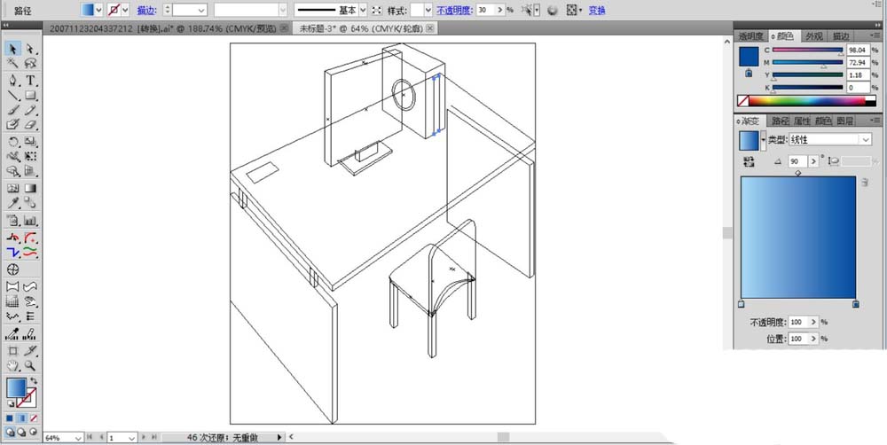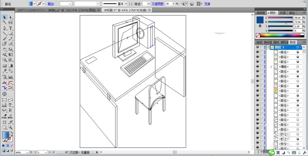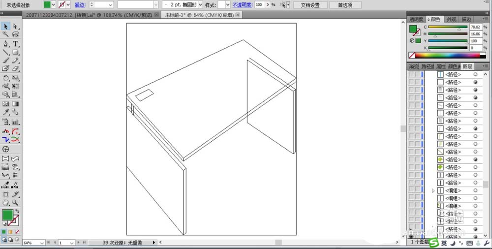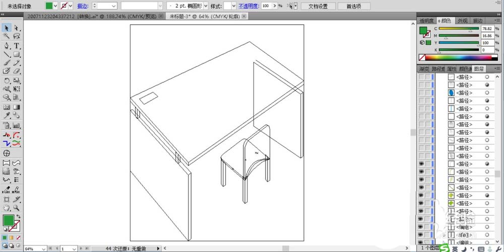 1、先用钢笔画出整个办公桌的基本轮廓,桌面、两侧的桌板等所有的路径。