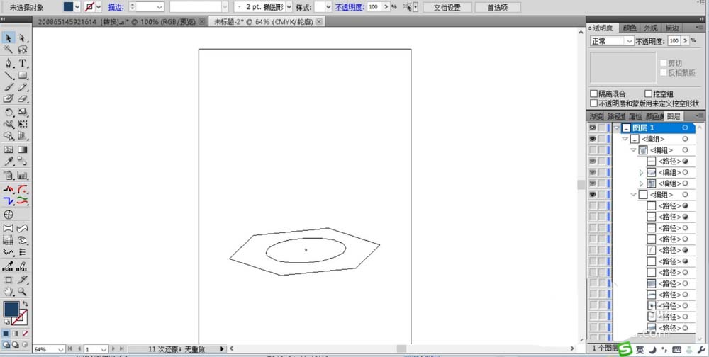 1、先画出螺栓下面部分的五边形轮廓,还有中间的圆形孔隙路径。