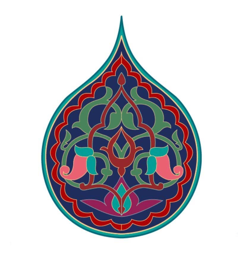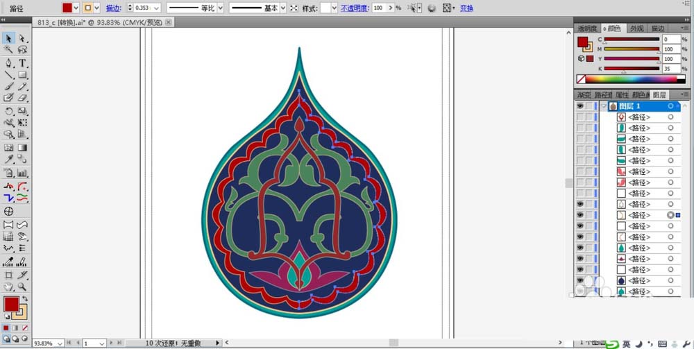 6、最后,我们绘制出水滴图案的中心,我们用暗红色填充中心元素,从而完成水滴花纹设计。