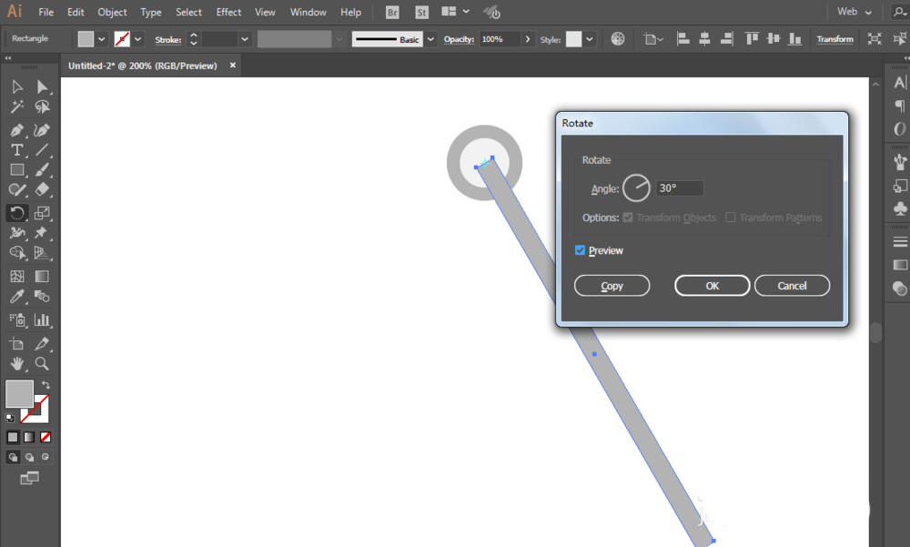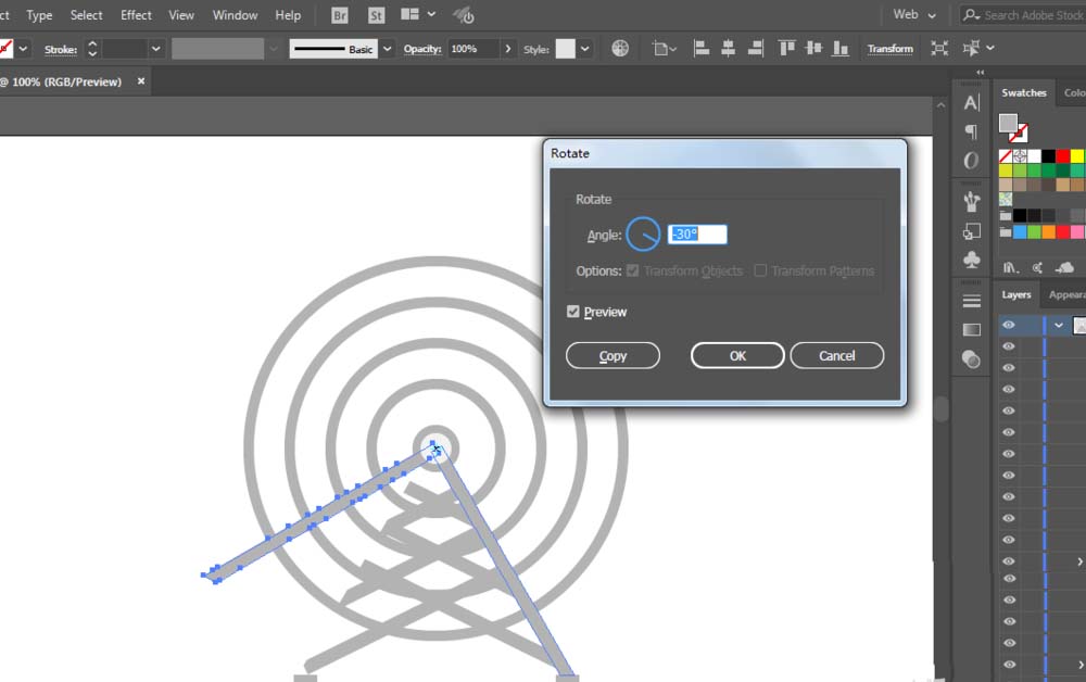 4、旋转工具进行旋转复制,需要两个对立的角度。