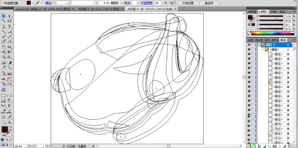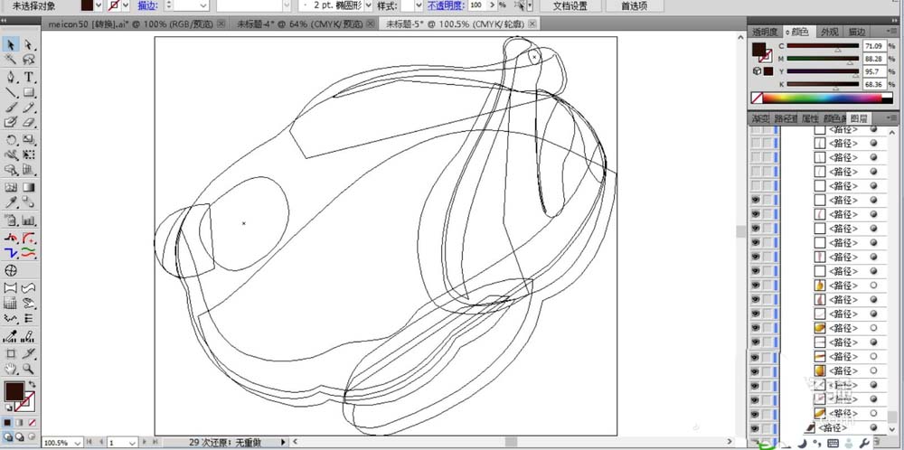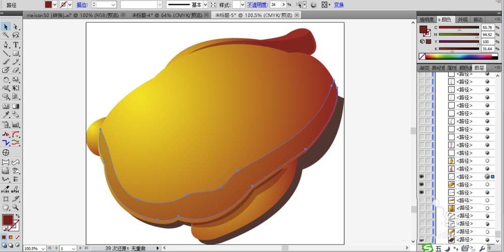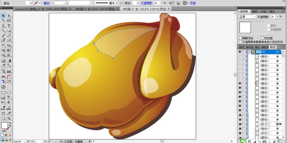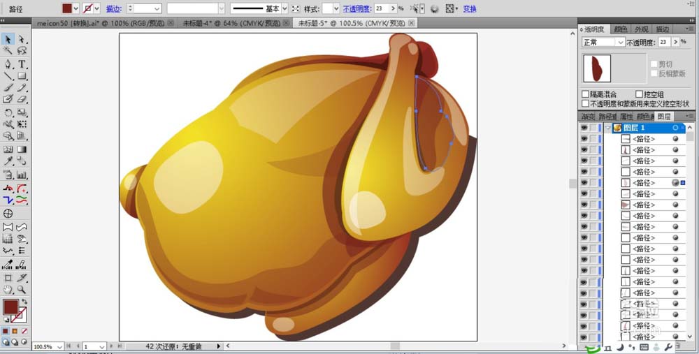 2、继续画出烧鸡的两个翅膀路径,还有身体上的一些高光与暗光路径。