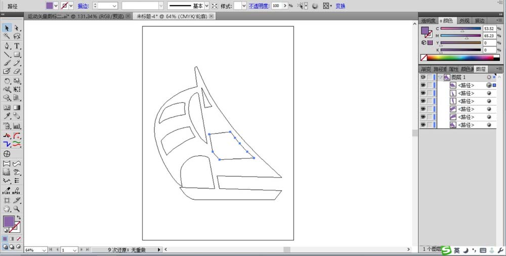 2、再用钢笔画出帆船当中的一个个的元素的路径,我们用小的封闭路径来呈现。