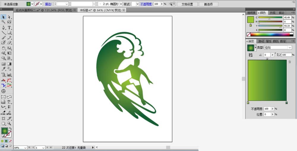 6、设置一个绿色的渐变填充这个冲浪运动员的路径,完成冲浪图标设计。