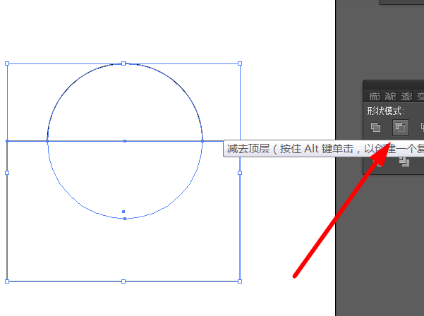 4、按住shift键,选择椭圆形和矩形,点击路径查找器里的减去顶层,如图。
