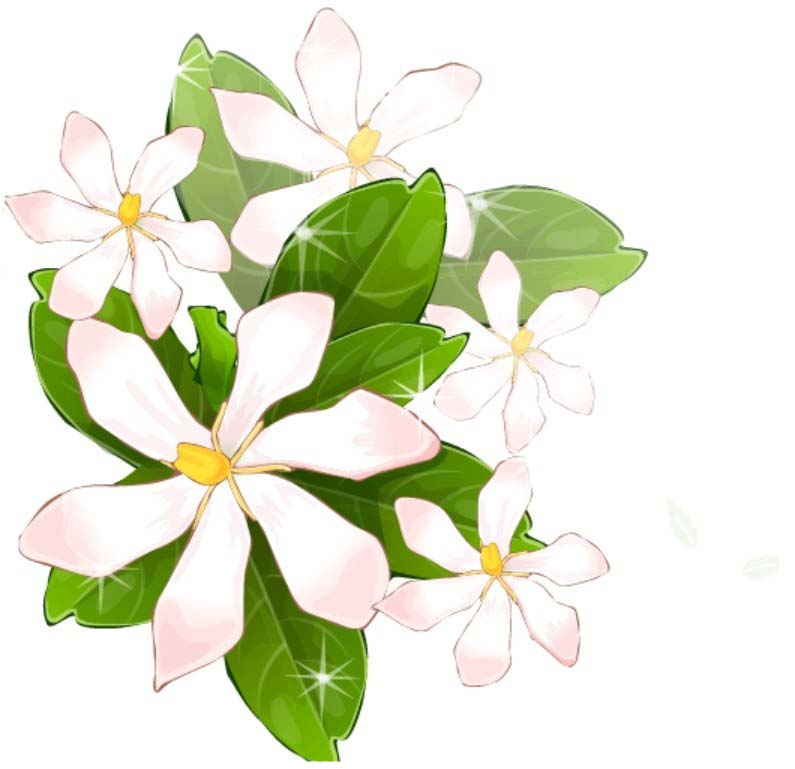 7、组合栀子花的花瓣元素,我们复制出更多的花朵在栀子花的上方与下方,改变一下花朵的大小。