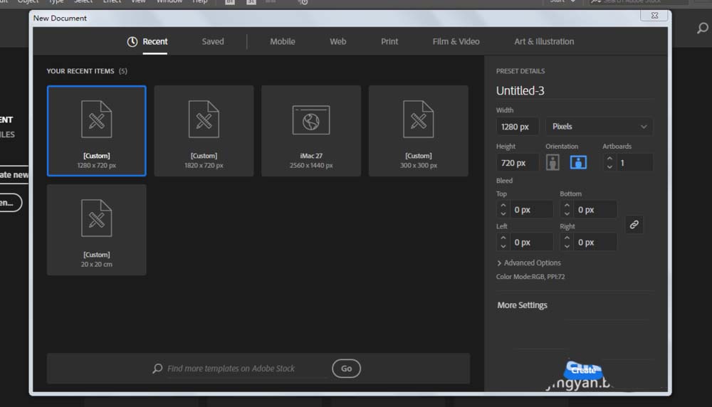 1、新建一个1280*720,颜色模式RGB的文档。