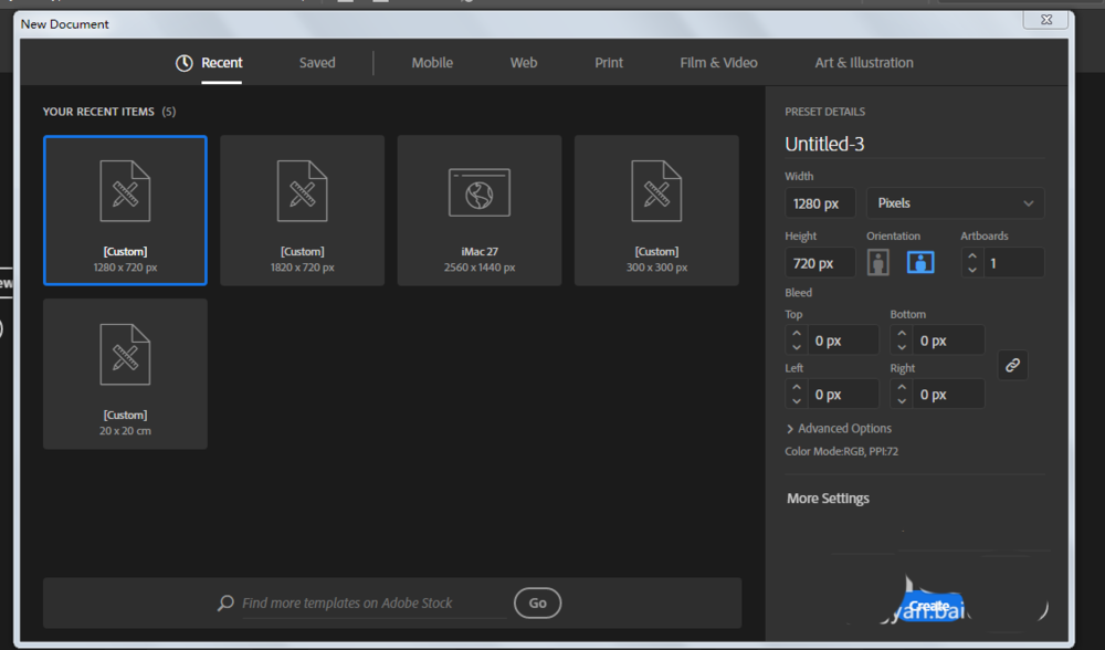 1、新建一个1280*720,颜色模式为RGB的文档。