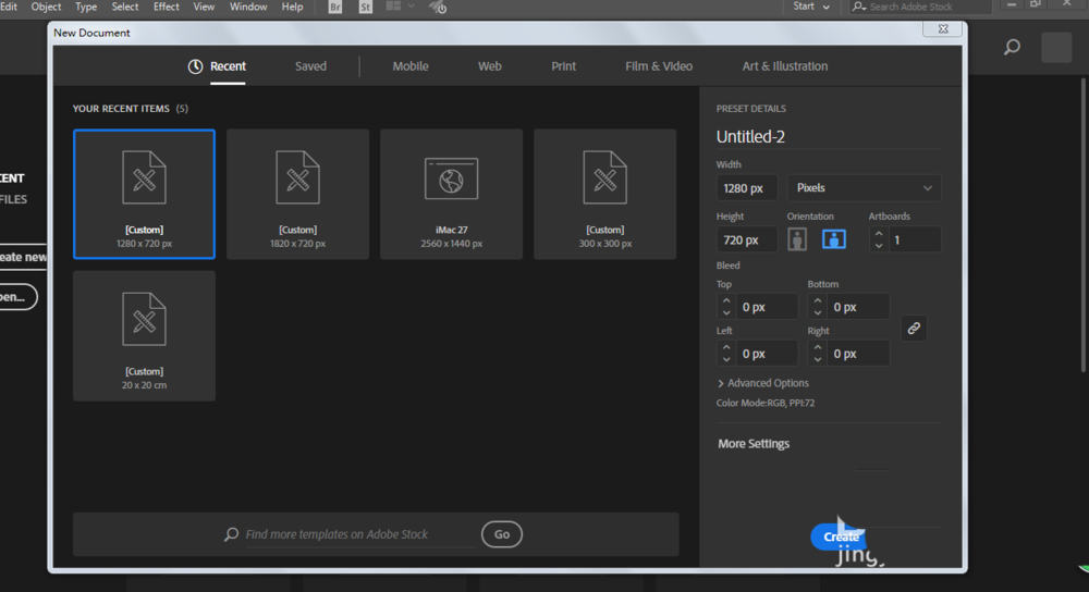 1、打开软件,新建一个1280*720,颜色模式RGB的文档。