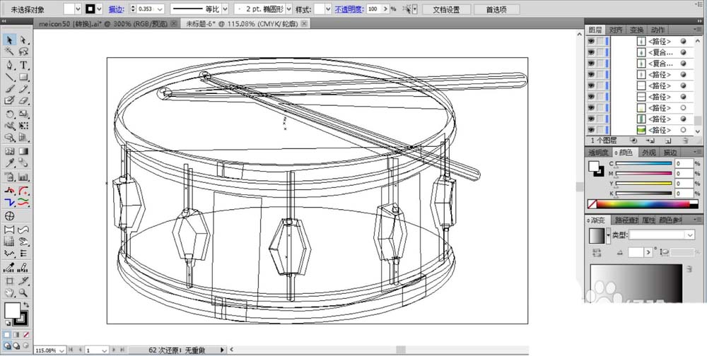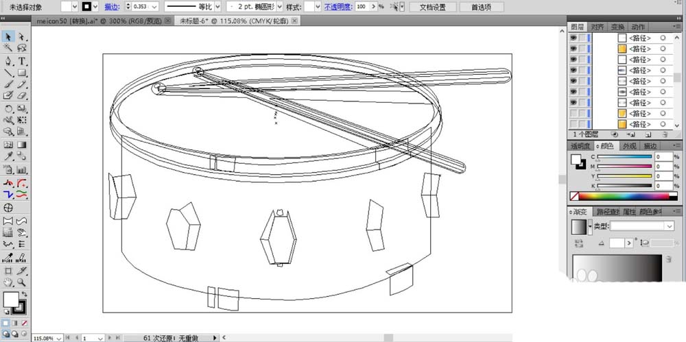 3、继续完成所有的小鼓的正面的装饰元素的路径绘制,还有小鼓顶端的细节结构。