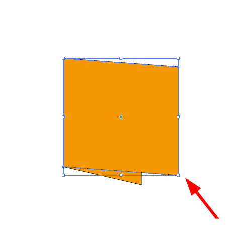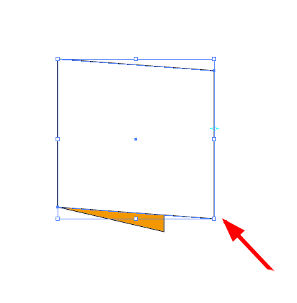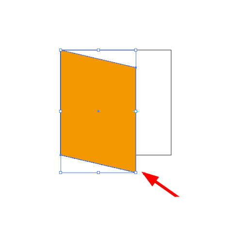 5、点击两个形状的相交锚点,然后拖动黄色的右手边的一边,往下拖动,要注意的是保持宽度不变,如图。