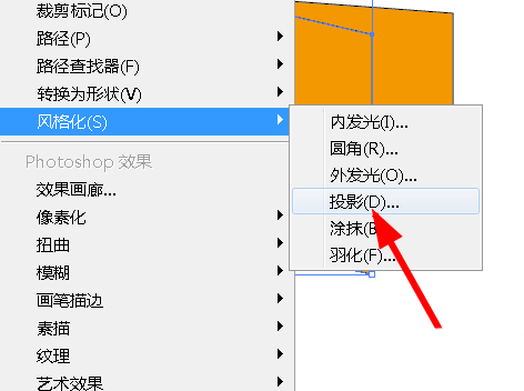 10、然后选择小矩形,执行效果-风格化-投影,如图。