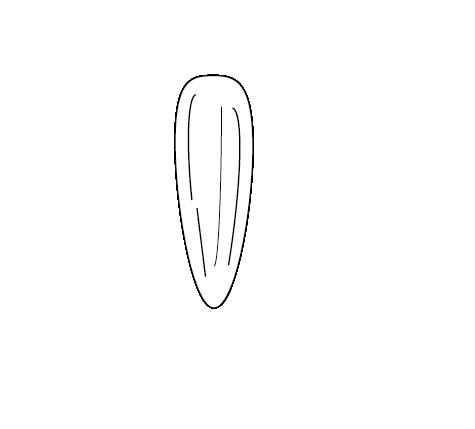 4、变换椭圆形状,然后使用弧形工具,在瓜子上绘制几条弧形,如图。