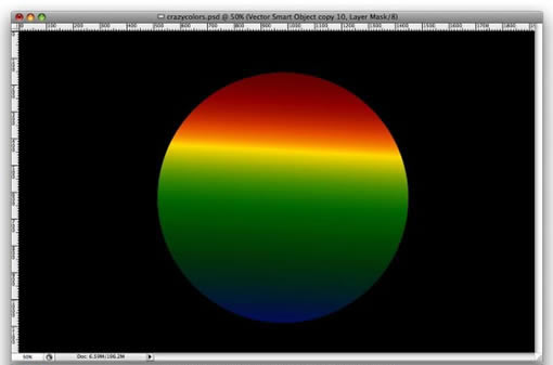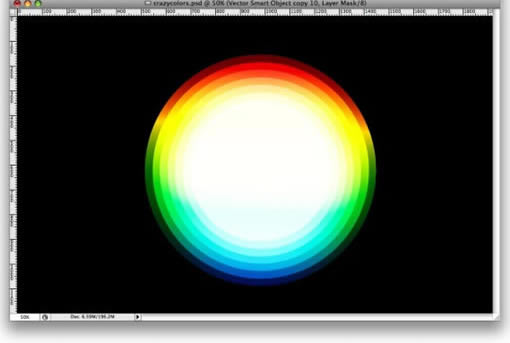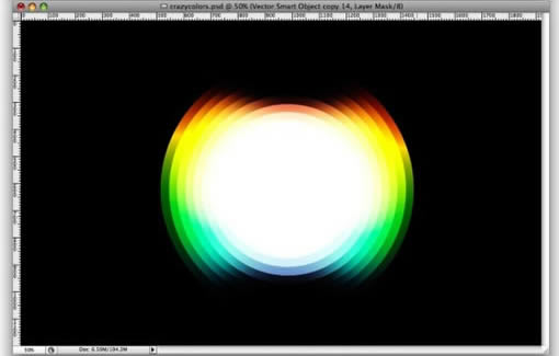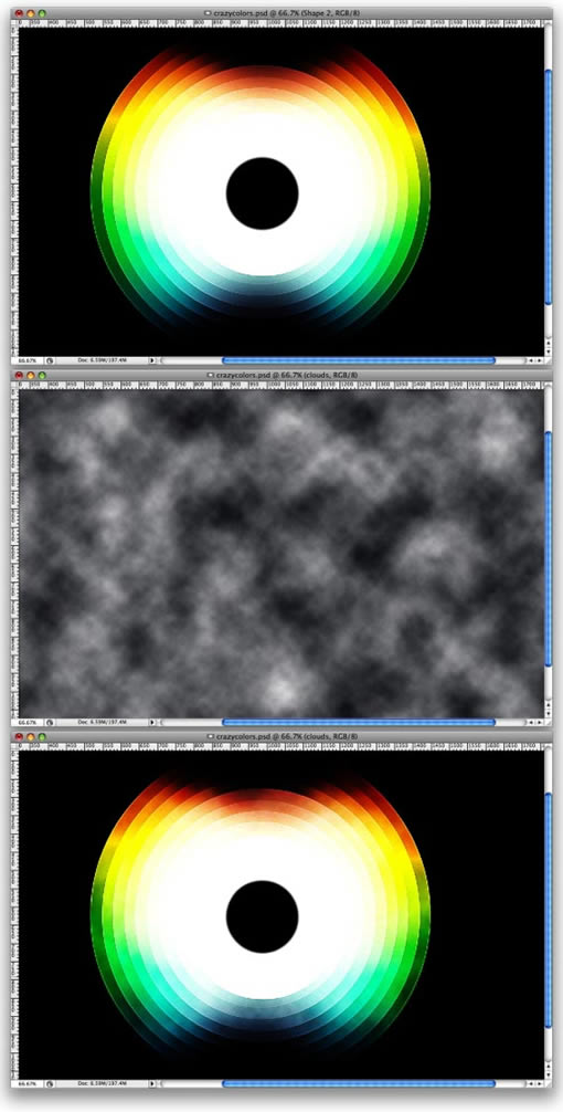 首先,新建一层,用椭圆选框工具(M)来画一个小圆。把它填充为黑色,使它和彩圆那层居中对齐。然后再创建一个新层,此时确保前景色和背景色为黑色和白色,使用滤镜 > 渲染 > 云彩,并把图层混合模式设为“叠加”。
