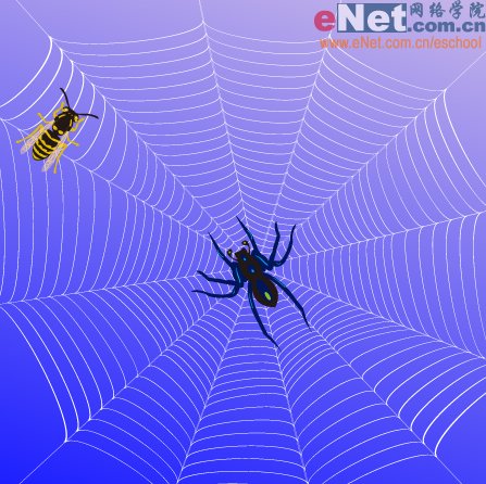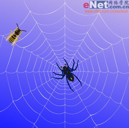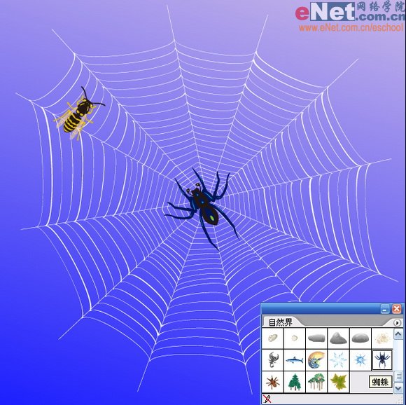 (15)选择菜单“窗口>符号库>自然界”,打开自然界面板,将蜘蛛和蜜蜂等昆虫拖入绘图区,适当变换蜘蛛和蜜蜂的旋转角度。