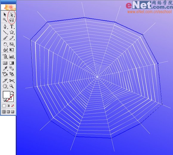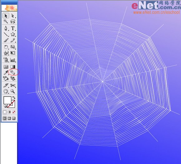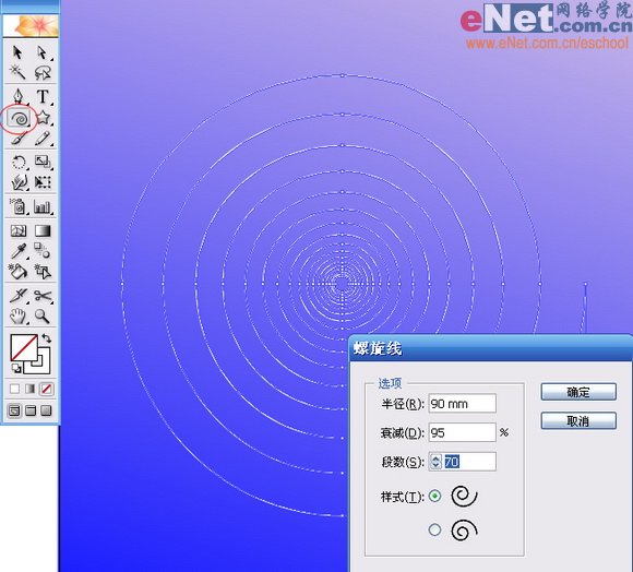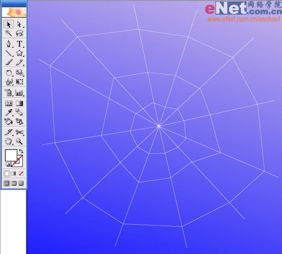 蜘蛛在织网是先搭建经线,然后在经线上进行螺旋运动搭建纬线,所以第二种蜘蛛网的制作方法也比较符合实际。首先选择“螺旋线工具”在绘图区单击