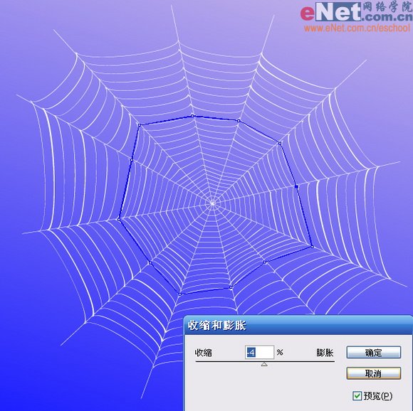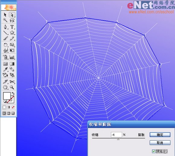 (13)选择菜单“效果>扭曲和变换>收缩和膨胀”,在收缩和膨胀对话框中设置参数为-4,点击确定。