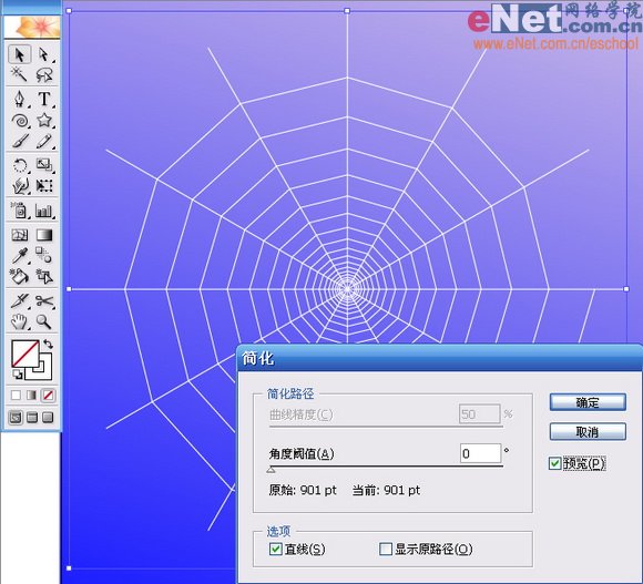 (19)选择螺旋线和星形,选择菜单“对象>路径>简化”,构选“直线”复选框,点击确定。