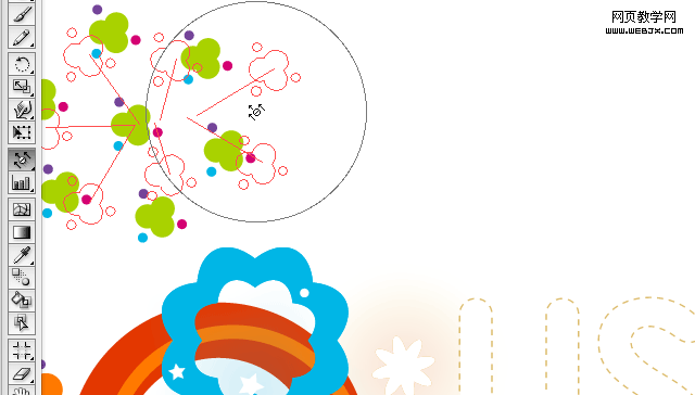 对象>路径>添加锚点 命令,这样增加环形路径上的节点数。 再执行