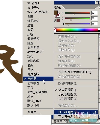 13找开符号库,找到自然界,点击一下,前面会出来一个勾