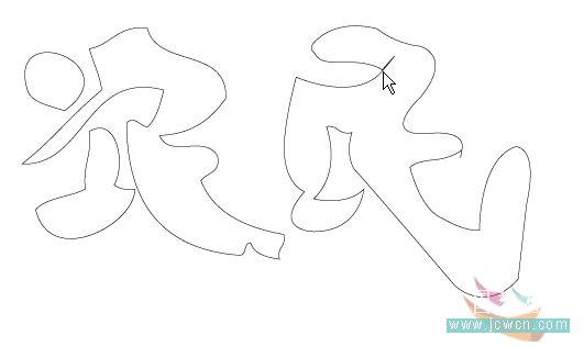 2用钢笔工具(快捷键P),画出农民的字形,用不着太精确,有点意思就可以了