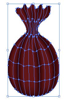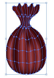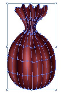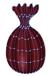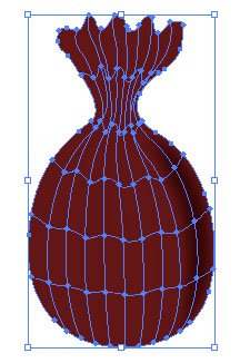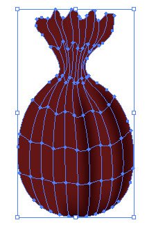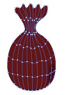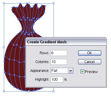 当你生成一个渐变网格物体时,这几条线叫网格线,在网格线间相交的点叫网格点(除此以外的点叫节点),四个点围成的面积叫网格面片。本教程专门介绍渐层网格工具的使用,以一个例子展开讲解。 Make a sack with the Pen Tool or the Pencil Tool. Go to Object > Create Gradient Mesh. Use the settings in the picture. Select the Mesh Tool. Select a anchor point with the Mesh Tool. When you have selected an anchor point with the Mesh Tool, pick a darker color. Use the Mesh Tool on more anchor points like in the pictures. Pick now a light color for the highlights. Do it with more.
