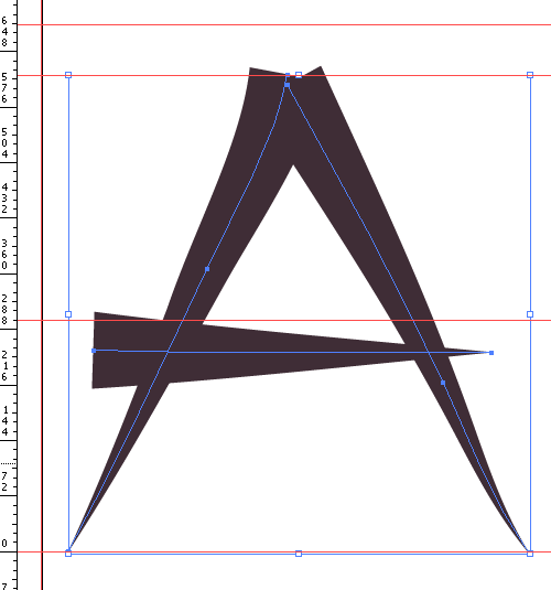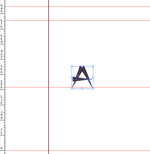 确保在 Illustrator 中打开标尺(ctrl-R),然后从顶部标尺中拖拽出几条辅助线,标明字形的所有关键高度。