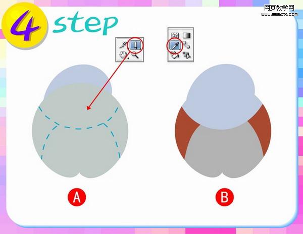 第二步:使用工具箱中的铅笔工具,沿图中虚线部分进行路径修改,如图A所示;修改好路径后用填充工具把线转换成面,并选择类似
