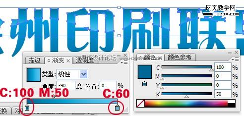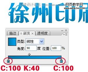 2.做一个从上到下的渐变,数值如下图,然后选中文字,执行“ctrl+c”-“ctrl+f”复制一个