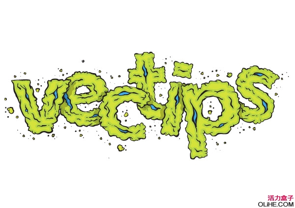 为了多做一点污渍,使用斑点画笔工具在文字的周围创建小污渍。使用与之前相同的实时上色技术填充这些形状。就完成了!