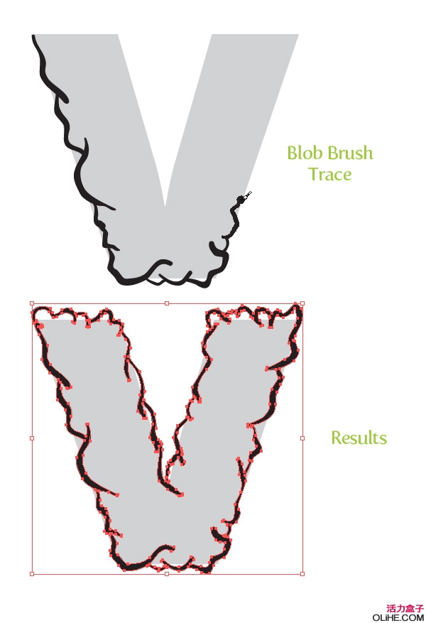 当你完成描绘第一个字母的外轮廓后,在字母里边也要创建些笔刷描边。