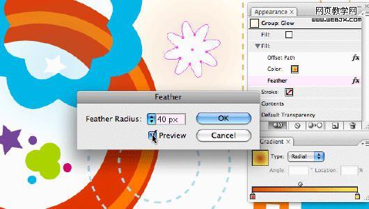 用径向填充给形状填色,中心橙色到黄色