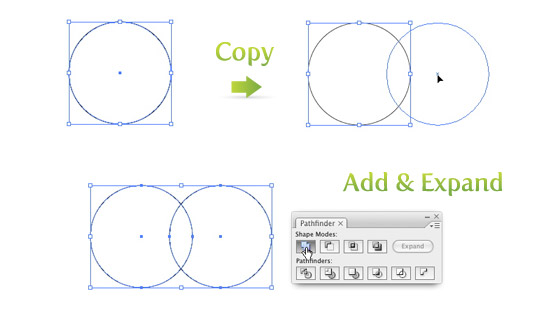 本文仅显示Windows系统快捷键 步骤1:创建叶片形状 首先,使用椭圆工具画一个圆。用选择工具选中这个圆,按住Alt键(用于复制已选中的对象)和Shift键(用于约束对象位置),拖拽出圆的副本。选中两个圆并在路径查找器里按联集并扩展。