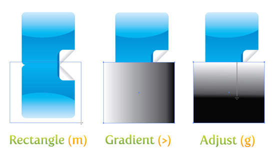 《快速变换填充和描边》一文中,还有一种创建渐变的方法。即先选中插图,然后按 > 键(译者注:是>键哟,不是右方向键,不要搞混了。这个快捷键挺好的,一按立即弹出渐变面板,非常方便)。保持默认的由黑到白的渐变色不动,使用渐变工具