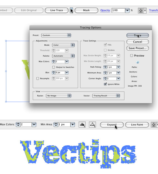 请记住在描摹选项中保存预设,再次使用时重新调出会很方便。