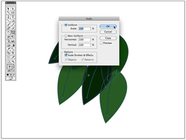 双击比例缩放工具。确保“Scale strokes&Effects”选项被选择,按下OK。