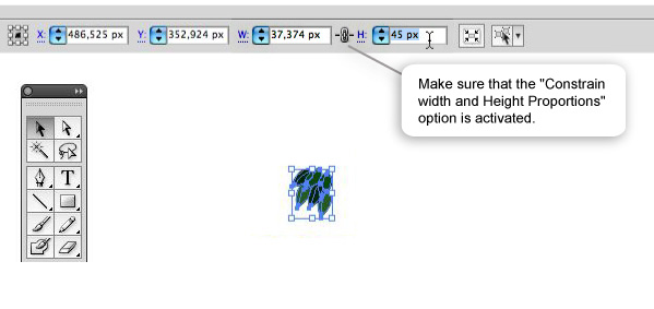 仍然选择叶子,设置这个宽度为45px,确保约束宽度和高度比例选项被激活。
