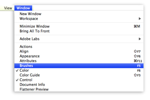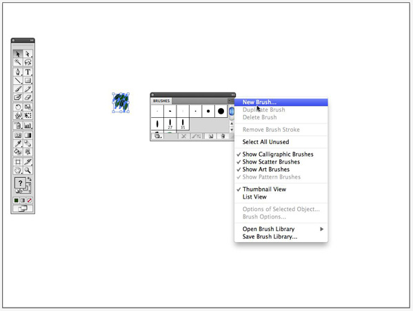 设置并描边为1pt,选择叶子,现在打开那个笔刷窗口,在顶右边的窗口有一个面朝下的小三角,点击它,选择笔刷…