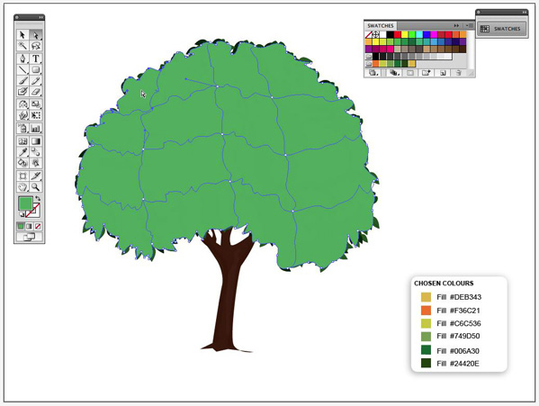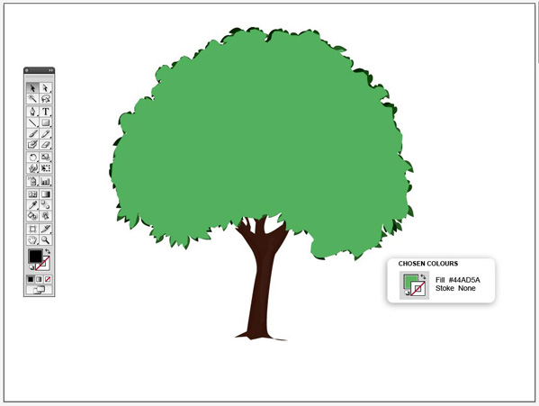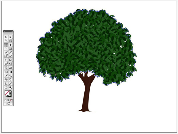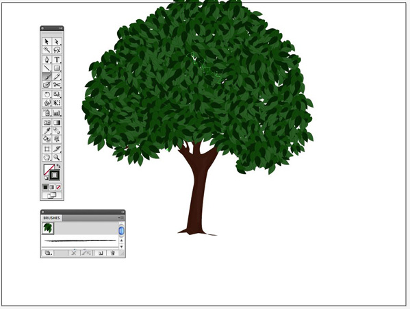 仍然选择笔刷工具,在你刚刚绘制的外线里的空白处开始绘制,留下三两个洞,使这棵树更逼真,并且用用额外增加的叶子润饰边缘。