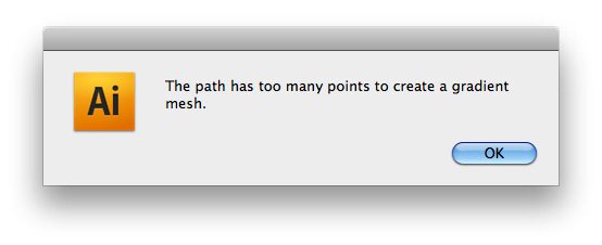 If you get an error message saying that “the path has too many points to create a gradient mesh”, then you can do one of the following: