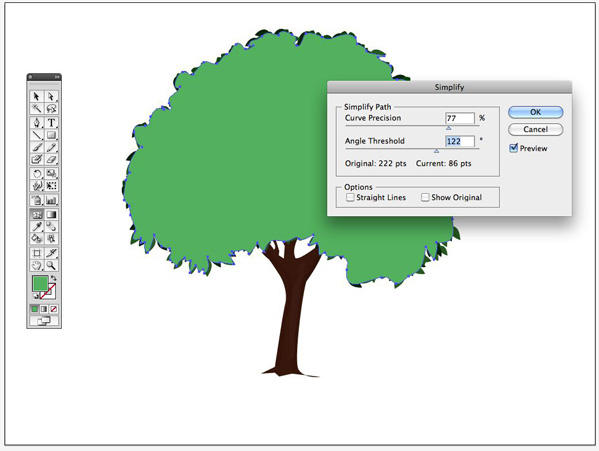 Redraw the shape without as many points Or go back, select the shape, and go to Object > Path > Simplify. Check the preview box, and bring both the Curve Precision and the Angle Threshold down until the Current pt is under 100. Then you are ready to repeat Step 24.