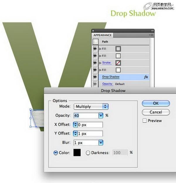 我们知道物品层叠到一起都会在下层产生阴影,所以我们接下来就为我们所制作的“布料”添加一个阴影效果,增加布料缠绕叠加的层次感。选择效果-风格化-投影,我们所添加的投影在最先面,请确保所选的填充色在最底层。(图07)