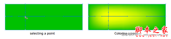 形状转换成网格对象后,你可以使用3种工具选择网格点:网格工具,直接选择工具,套索工具。选中一个网格点后,然后从色板调板里选择一个颜色上色。或者使用吸管工具吸取图片上的颜色。