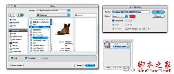 译者注:文件菜单-置入,置入时选中“模板”。然后双击模板图层,把“变暗图像”前的勾去掉。