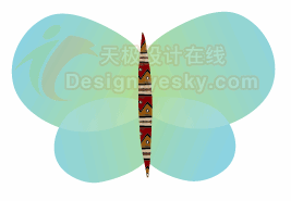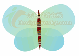 1.使用工具箱中的“钢笔工具”绘制出蝴蝶的身体,以合适的图案填充,并将描边色设置为无,如图1所示。