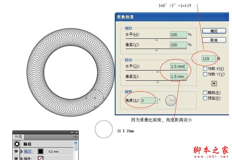2.选中小圆,选择工具箱"旋转工具",按住键盘上Alt键,在远离小圆的位置点击鼠标左键确定中心点,在弹出的对话框输入旋转角度,点击复制