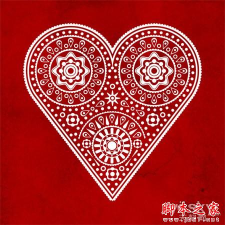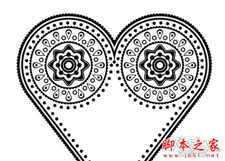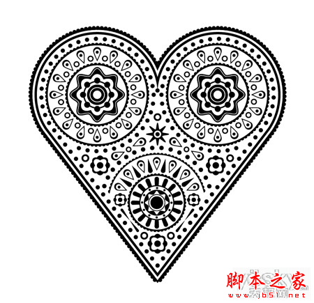 图案完成之后,再做一些简单的颜色处理,即可完成基本的繁复图案的矢量心形图插图了。